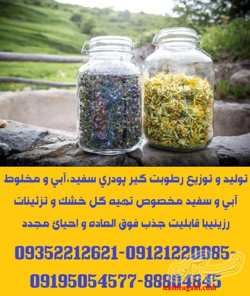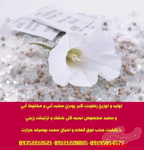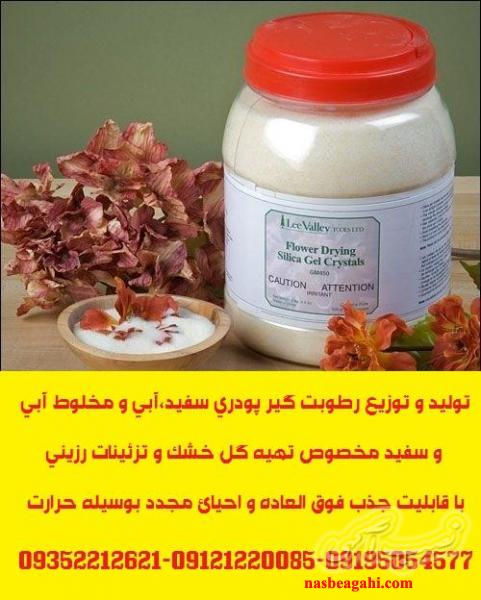 توزیع خاک رطوبت گیر(سیلیکاژل)مخصوص تهیه گل خشک بصورت پودری در 3 نوع سیلیکاژل پودری سفید،پودری آبی و مخلوط آبی و سفید.