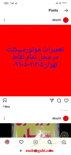 09905011205تعمیرات موتور سیکلت در محل تمام نقاط تهران ایرانی خارجی با بیست سال تجربه