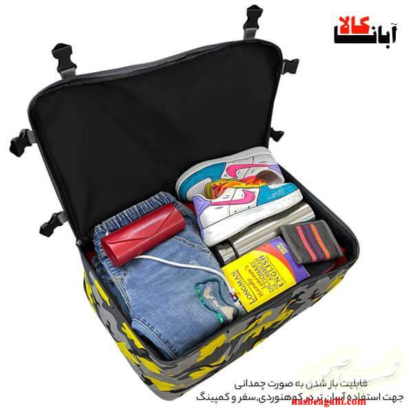 1 : دارای یک محفظه بزرگ زیپی آستر تمام باز شو به صورت چمدانی جهت قرار دادن وسایل اصلی