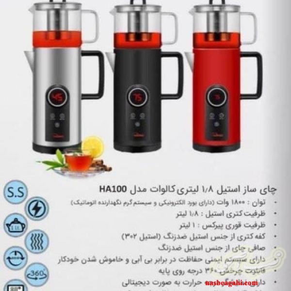 چای ساز دو رنگ مشکی و قرمز دارای صفحه نمایشی دیجیتال قوری پیرکس گارانتی اصلی رایا تدبیر کویر