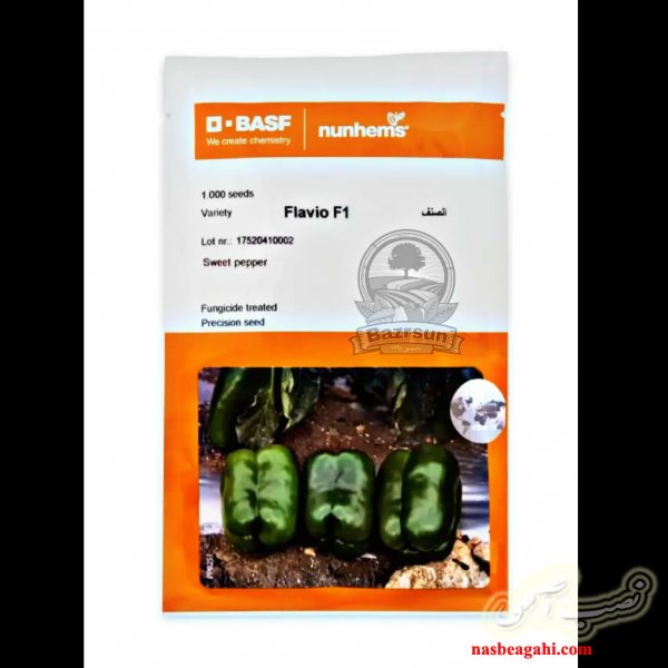 بذر فلفل دلمهای فلاویو رقمی میانرس و مناسب کشت در فضای باز و گلخانه میباشد. این محصول تولید شرکت نانهمز هلند است. دارای بوتههایی قوی با برگهای بزرگ که سبب ایجاد پوششی مناسب روی میوهها شدهاند. این محصول سازگاری بالایی با طیف وسیعی از شرایط آب و هوایی دارد و همچنین قابل حمل و نقل به مناطق دور است. میوه به فرم سه و چهارلوب و بلوکی کامل به ابعاد 7 در 9 میباشد. رنگ میوه سبز تیره براق بوده که در زمان رسیدگی کامل به رنگ قرمز در میآید.
