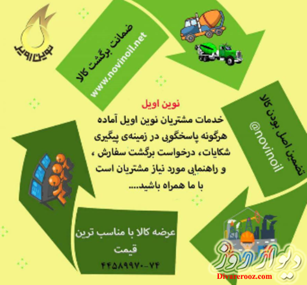 نوین اویل یکی از بزرگترین مجموعه های واردات و فروش گریس و روغن های صنعتی تخصصی در ایران و خاورمیانه می باشد. این مجموعه توانسته است با بهره گیری از نیروهای کارآمد و متخصص خود و با ایجاد بزرگترین شبکه دسترسی به آخرین محصولات کمپانی های معتبر جهانی خدمات متنوع، کارساز و موثری را برای تمامی مصرف کنندگان در سطح کشور فراهم سازد. مهم ترین فعالیتها و خدمات این گروه، تامین و ارائه انواع گریس، روغن و مواد شیمیایی خاص صنعتی می باشد.