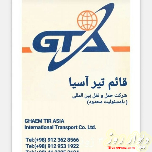احتراما به استحضار میرساند شرکت حمل و نقل بین المللی قائم تیر اسیااز با سابقه ترین و مجرب ترین شرکتهای حمل و نقل بین المللی (بابیش از 25 سال سابقه) در زمینه تمامی شیوه های حمل به صورت زمینی , دریایی , هوایی و ریلی فعالیت داشته و افتخار دارد با داشتن کادری متعهد و متخصص اماده همکاری و خدمت به مشتریان گرامی باشد: ناوگان حمل و نقل زمینی ; در خطوط ترانزیتی ترکیه , گرجستان , ارمنستان , اروپا , ازبکستان و عراق ناوگان حمل ونقل دریایی: از بنادر چین , اروپا , هند , اقیانوسیه , کشورهای حوزه خلیج فارس , آفریقا و بالعکس. ناوگان حمل ونقل ریلی:حمل انواع کالاهای صادراتی و وارداتی ازطریق سرویس ریلی به منظورکاهش هزینه وایمنی بالا ناوگان حمل ونقل هوایی:باقابلیت حمل هرگونه کالای صادراتی و وارداتی از ایران به سراسر جهان و بالعکس . سایرخدمات: انجام کلیه امورگمرکی,ترخیص کالا,حمل کالای فله,حمل کالای خطرناک , حمل مایعات , دارای تانکرحمل (stainless steel) , حمل کالای ترافیکی وفوق سنگین و حمل کالاهای وارداتی بصورت گروپاژ (خرده بار). لطفاجهت دریافت نرخ های رقابتی با ما تماس بگیرید.09129531922اکرامی
