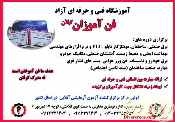 مجتمع آموزشی فن آموزان، برای راحتی کارکنان و شاغلین، آمادگی خود را جهت برگزاری دوره های فنی برق و تاسیسات با ارائه مهارت فنی و حرفه ای در ایام هفته حتی روزهای تعطیل اعلام می دارد.