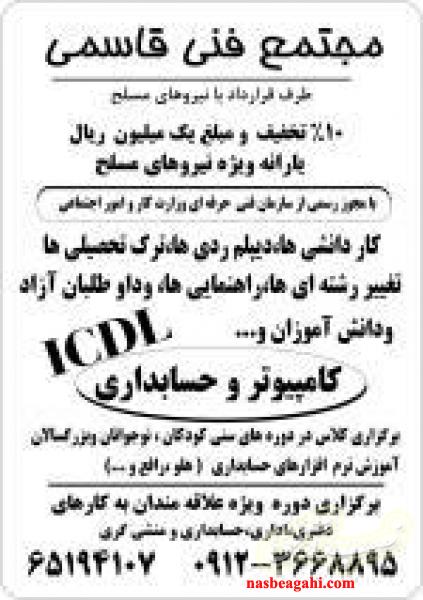 آموزش تخصصی دوره های کاربردی ویژه اشتغال کامپیوتر ، حسابداری ،