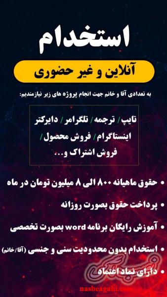 ♨️استخدام 200 نفر کارمند اینترنتی و غیر حضوری خانم / آقا
