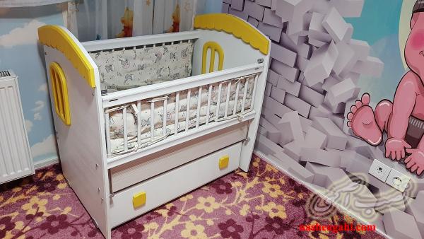 تخت گهواره ای کودک به همرا تشک و محافظ پارچه ای برای نرده های کناری
