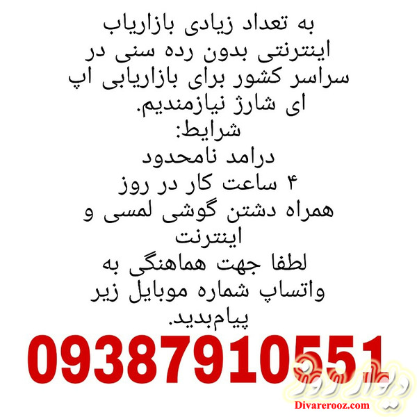 به تعداد زیادی بازاریاب اینترنتی بدون رده سنی در سراسر کشور برای بازاریابی اپ ای شارژ نیازمندیم.