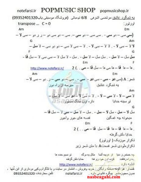 امکان خرید تکی ، با متن شعر و آکورد هر عدد 5 تومان