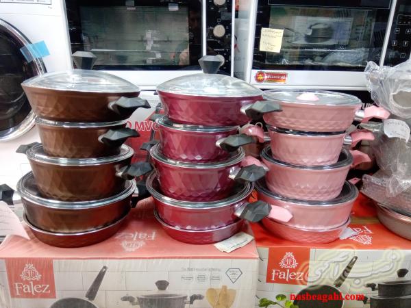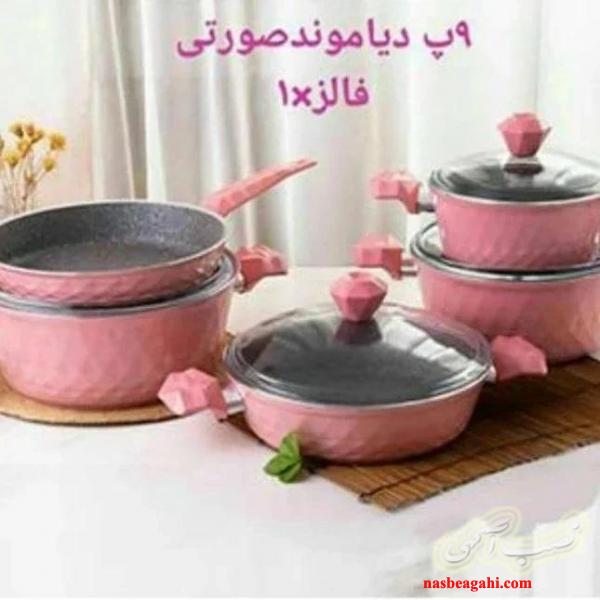 نه پارچه پوشش گرانیت در سه رنگ مسی صورتی و بنفش سایز قابلمه 28-24-20تابه دو دسته 26تابه تک دسته 26