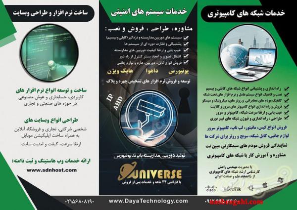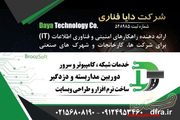 شرکت دایا فناوری ( بروزسافت ) ارائه دهنده خدمات شبکه و دوربین مداربسته IP , AHD و نرم افزار برای شرکت ها و کارخانه های صنعتی ، تولیدی و تجاری