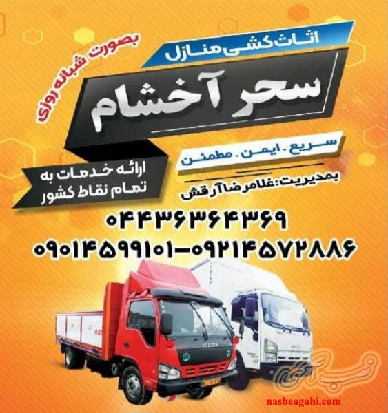باربری و اسباب کشی ( منتخب بار سحرآخشام ) در خوی ،به مدیریت اقای غلامرضاآرقش در خوی آماده ارائه خدمات به شما همشهریان عزیز و گرامی هستند .