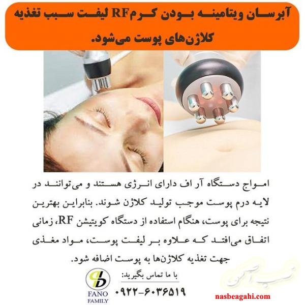 آبرسان ویتامینه بودن کرم آر اف لیفت سبب تغذیه کلاژن های پوست میشود.