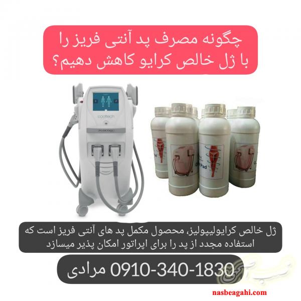 ژل موجود در بسته بندی پد های کرایو که به صورت لیتری، بدون پارچه ارائه میشود و میتواند هزینه مصرفی دستگاه را کاهش دهد و ریسک های احتمالی کار با دستگاه کرایو را به صفر برساند