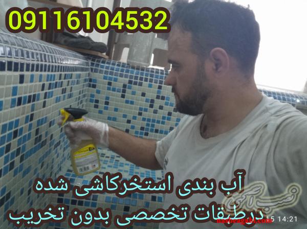 ارائه کلیه خدمات استخر جکوزی آبنما حوضچه آبشار ... رفع تخصصی نشتی اب استخر روزانه تا50 سانت نشتی وکاهش آب استخر باجدیدترین و متفاوت ترین روش_ایجادغشای یکپارچه باپوشش 3میلیمتری ونفوذپذیری در لایه های زیرین بافت سازه استخر.. ومسدودسازی شیارها وکانالهای ایجادشده در زیرسازی ها بتن سیمان و فضای بین بندهای سرامیک ایجادشده که بعداز بکارگیری موادآب بندی بندآب تمامی ترک ها درز ها میکروترک ها، و شکافهای پنهان از نشت آب.