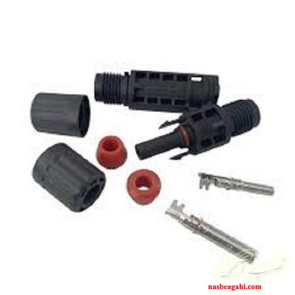 کانکتور خورشیدی 1500 ولت MC4 جفت (نری و مادگی) یک مثبت و یک منفی همراه با پین مناسب برای اتصال پنل های خورشیدی به صورت سری یا موازی به یکدیگر است