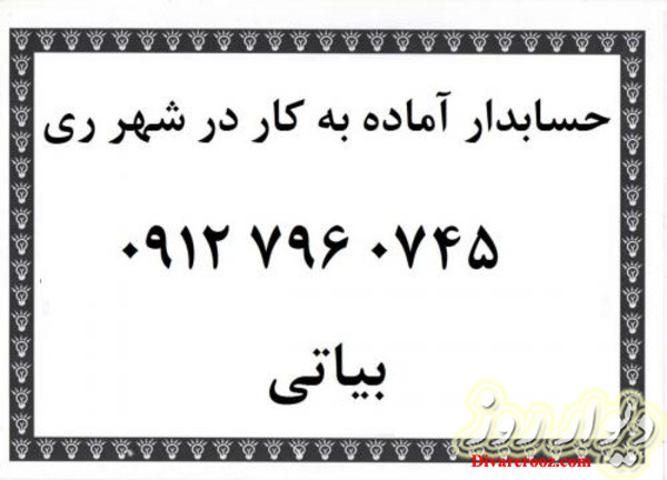 کارشناس حسابداری یا حسابدار خانم آماده کار در دولت آباد ، شهر ری یا تهران .