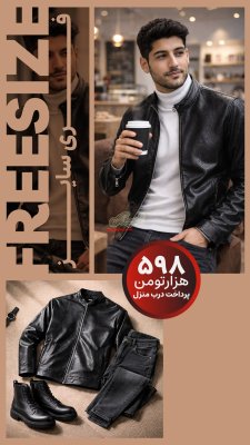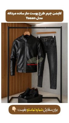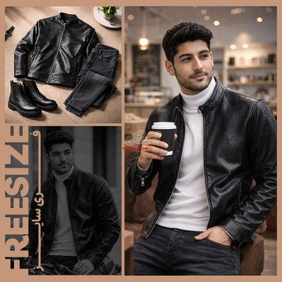 🎁 کاپشن چرم طرح پوست مار ساده مردانه مدل Yasan