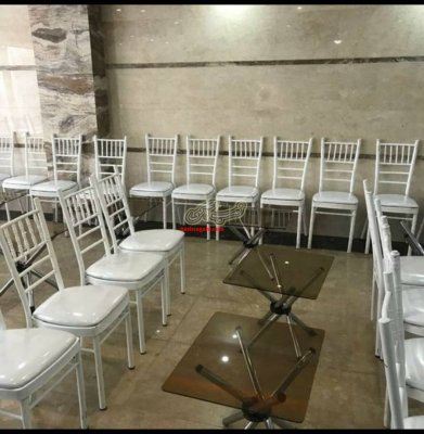 اجاره صندلی تاشو . شیواری سفید. صندلی سرمه ای. میزشام ۱۲۰ در ۹۰.