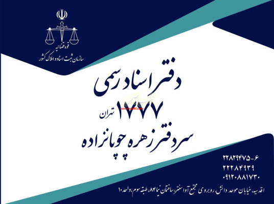 دفتر اسناد۱۷۷۷~سر دفتر زهره چوپان زاده اقدسیه،روبه روی آواسنتر،ساختمان نیما۸۴،طبقه سوم